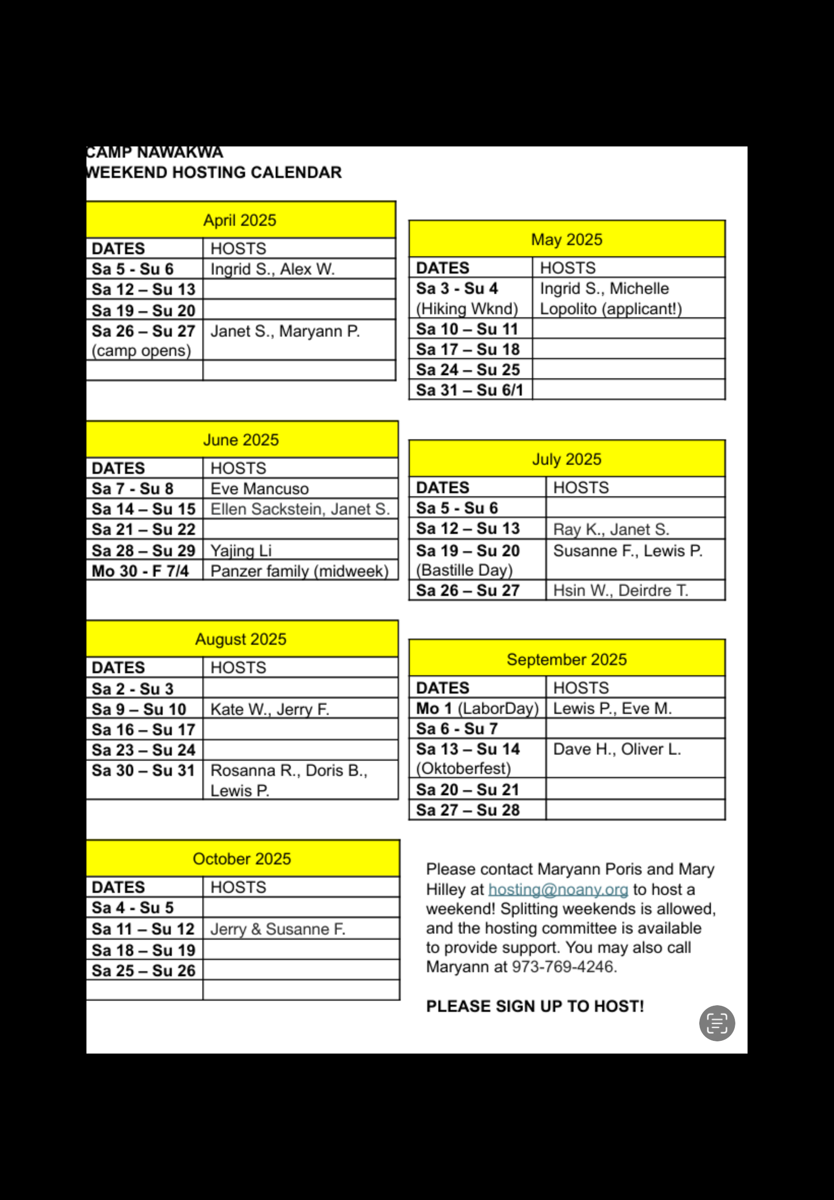Sign up now to Host a weekend at Nawakwa