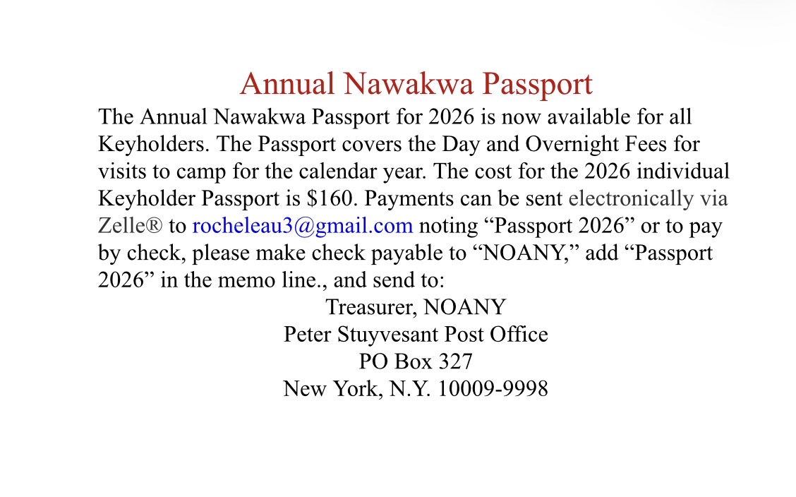 Founded in 1923, the Nawakwa Outdoor Association of New York, Inc. is a membership organization dedicated to the enjoyment of the outdoors through hiking, walking, camping, swimming, skiing, sailing, canoeing, and kayaking, and to the conservation and preservation of our wilderness, particularly the mountains, lakes, trails, and camping areas of the metropolitan New York region.